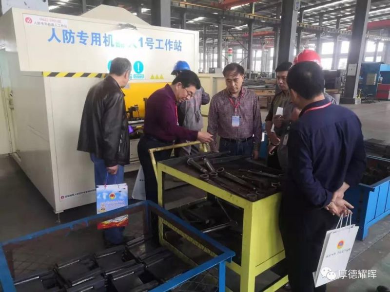 20日上午,與會代表專程到我公司軍工產(chǎn)業(yè)園參觀了10家企業(yè)“四新”成果現(xiàn)場展(演)示,學(xué)富鎮(zhèn)鎮(zhèn)長馬俊、人武部長楊剛陪同了參觀。此次我公司參展的創(chuàng)新產(chǎn)品——耀暉牌“YH人防專用型鋼”、“硫化連接”密封膠條技術(shù)、YHCG-2型人防鉸頁板鉆攻一體機、人防型鋼多功能拼框臺,特別是人防專用機器人1號工作站,吸引了眾多參會代表駐足觀看與咨詢,贏得了多方關(guān)注與好評。