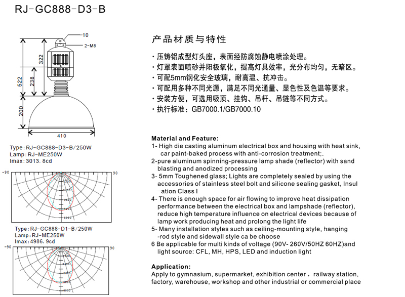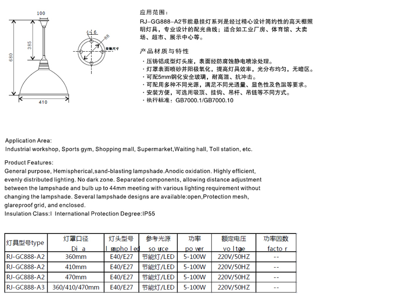 壓鑄鋁成型燈頭座,表面經(jīng)防腐蝕境地昂噴涂處理。燈罩表面噴砂并陽極氧化,提高燈具效率,光分布均勻,無暗區(qū)。