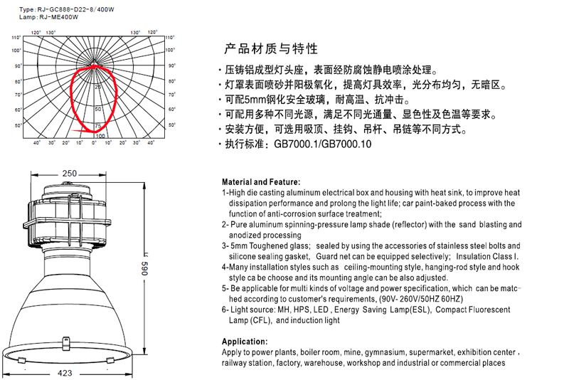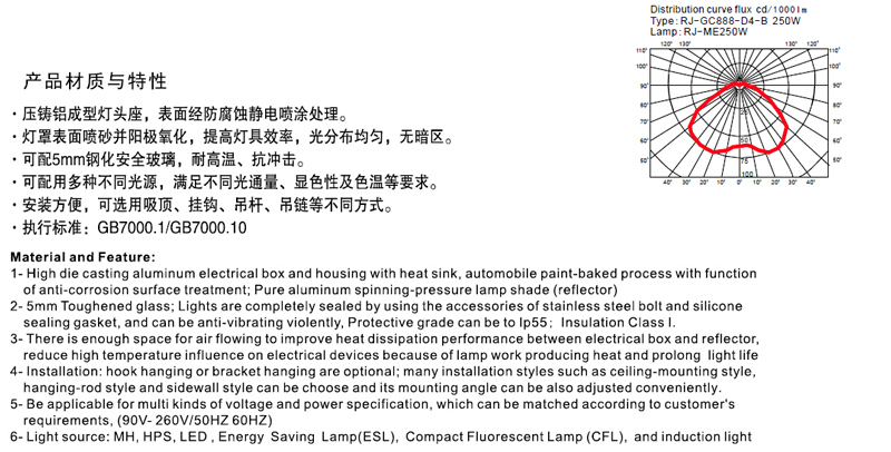 壓鑄鋁成型燈頭座,表面經(jīng)防腐蝕境地昂噴涂處理。燈罩表面噴砂并陽(yáng)極氧化,提高燈具效率,光分布均勻,無(wú)暗區(qū)。